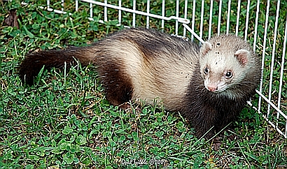 A Ferret is a very friendly animal, but can be nippy at times. They are great pets but are good escape artists. Ferrari once escaped and we later found him when my wife screamed from the bedroom that the ferret was sitting in the middle of our bed. They need a knowleagable owner to care for them. |