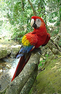 The Scarlet Macaw is part of the largest parrot family on earth. He is friendly but cannot be trusted. He gets mad very easily and ruffles his feathers if another bird is in the vicintiy who will compete for attention from us. |