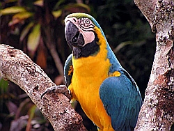 The late Blue & Gold Macaw was the most gentle macaw I have owned and had great affection for me. Unfortunately he developed a tumor and died a few years ago after living for about 8 years. Normally they live in the excess of 80 years, hence his loss is dearly felt even today. |