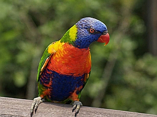 This Rainbow Lory is undoubtedly one of the most beautiful bird in the world. Mine can play dead if he is handled and can sheik continously if he thinks we are going to get a hold of him. |