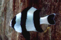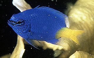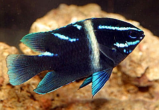 Fiji Damsel are a beautiful combination of color and a pleasure to watch playing in the aquarium. Most of these fish stay in small shoals in the wild when young, breaking away from the group as they grow, and eventually become solitary as adults. When dealing with several Damsels in one aquarium, plenty of rockwork and hiding places are necessary in order to keep quarrels to a minimum. |