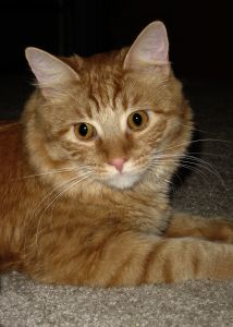 We adopted the three kittens sisters from the local animal shelter and since we did not want to seperate them we got the entire package deal. They have a lot of body fur and bushy tails more like a persian cat. They are a few years old now and have free reign in the bird room where the rabbits and other animals co-exist without much problems. |