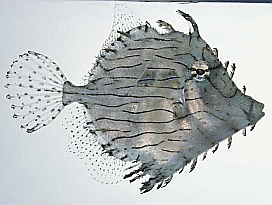 File Fish One of the best fishes for the aquarium. This unique filefish is covered with skin flaps and tassels that help it blend in with the plants it usually lives among. It tends to be a shy species. |