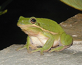 This American Green Tree Frog has become a very popular pet species over the recent years. They are grass-green colored.Ours actually came fromour back yard and the kids decided to keep it. It quite enjoys to feed on crickets that we put into their enclosure. |