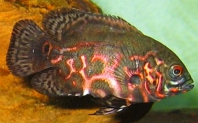 The Oscar Cichlid is the hardiest feshwater fish I have kept. It is veryinteractive and will feed from your hand. It will acknowledge your presence in front of the tanka nd often follow your finger thinking it is food. A great fish to have and watch it grow rapidly in any size aquarium. |