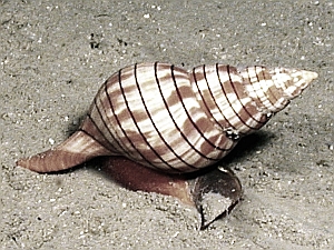 The Ocean Snail is one we adopted when it was given to us by a family that came from a vacation to Myrtle Beach SC. It is very large, as much as the palm of my hand, yet manages to disapper in the sand for days and then reappears one fine day. We are not sure how it has survived for more than 4 years as we do not know what it eats. I am sure there is plnety of leftovers from what we feed the fish inthat same tank. |